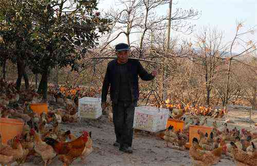 青年农民王光周流转60多亩山地,选择皖中优良鸡种,采用绿色生态林下养殖的方式,发展生态土鸡养殖产业,获得了国家有机产品认证。王光周的有机土鸡肉质香浓,口感好,氨基酸和蛋白质含量高,产出的鸡蛋品质好,赢得了上海、深圳等各地市场的青睐,年出栏商品土鸡4万余只,销售土鸡蛋800多万枚,通过“合作社+村民”的代养代售模式,带动了当地60多户村民增收致富。(特约记者 巢志斌 摄影报道)