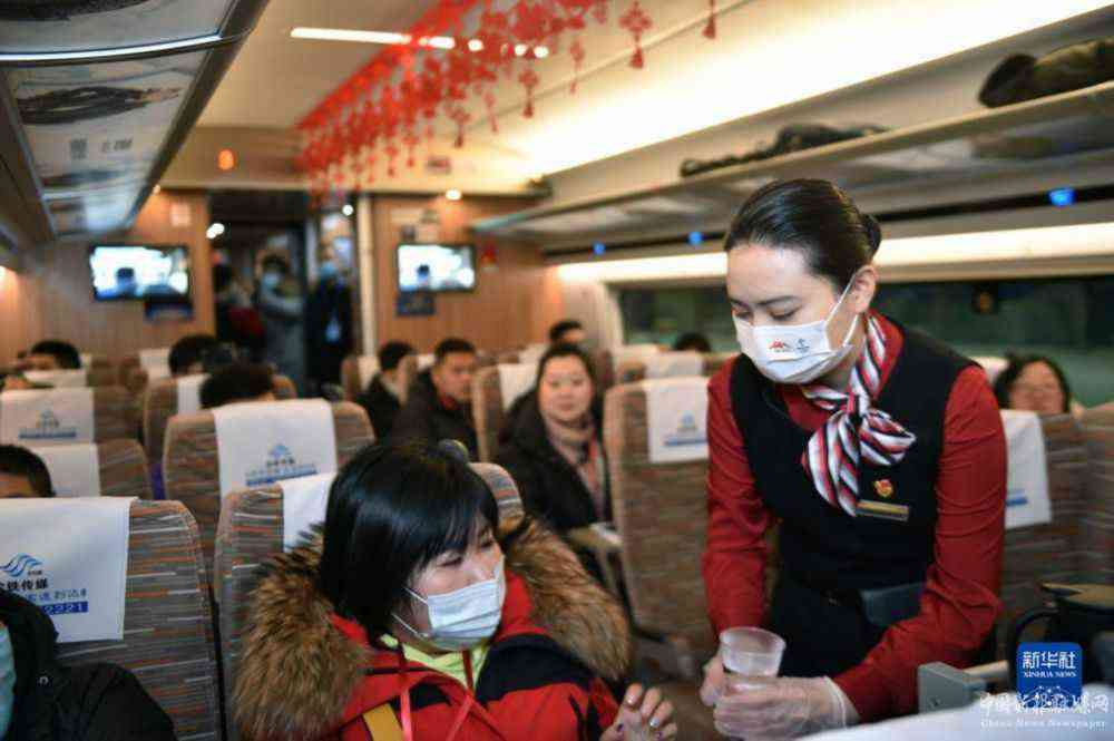 12月24日,沈佳高铁白敦段列车工作人员为乘客服务。