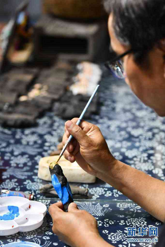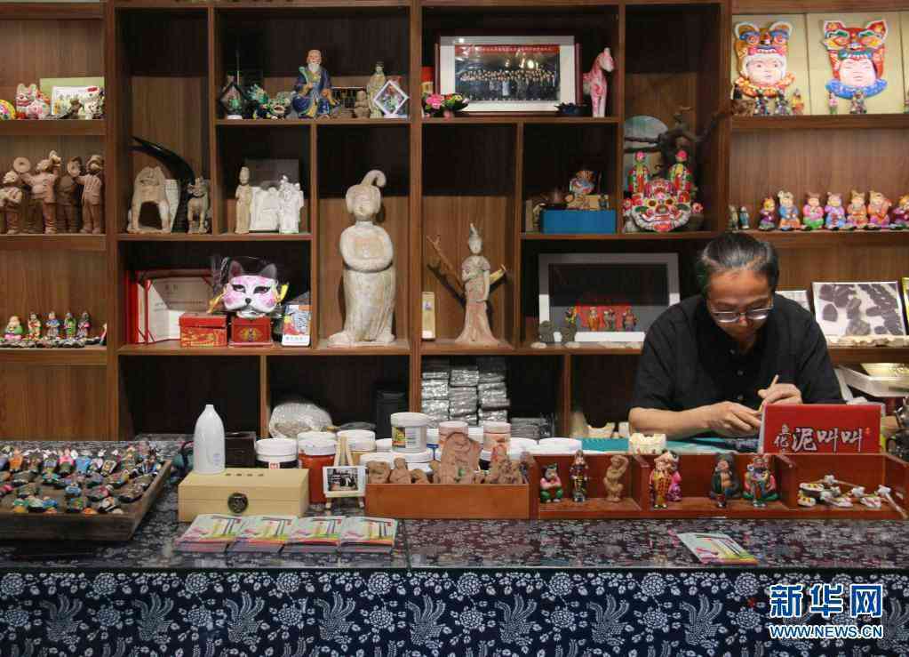 5月7日,泥塑艺人在西安市长安区王莽街道小峪口村的工作室内创作。