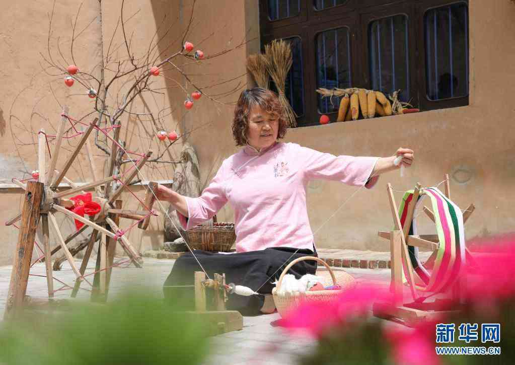 5月7日,在西安市长安区王莽街道小峪口村的“木兰摇”手工织坊,手艺人正在纺线。
