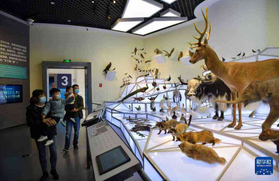 10月13日,游客在澄江化石地世界自然遗产博物馆参观动物标本。新华社记者 陈欣波 摄