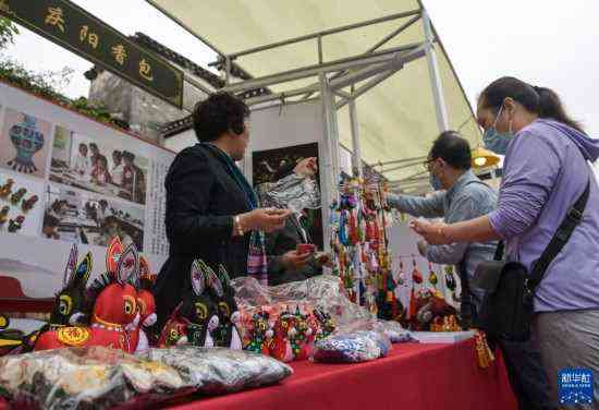 10月15日,游客在第五届中国非物质文化遗产传统技艺大展上观看庆阳香包。新华社记者 韩旭 摄