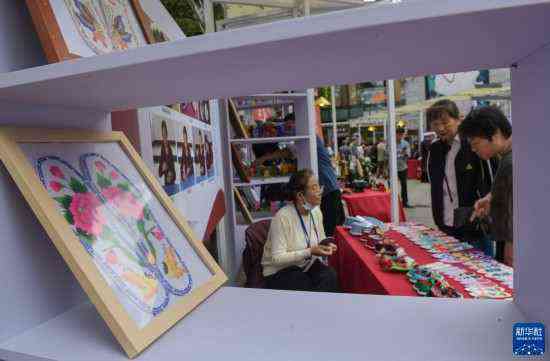 10月15日,游客在第五届中国非物质文化遗产传统技艺大展上了解红安绣活。新华社记者 韩旭 摄