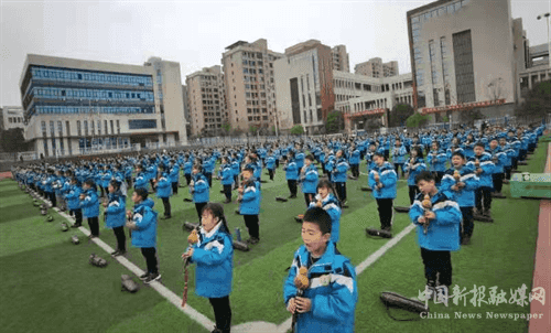 12月15日,临湘市第六完全小学操场上,600多名学生,一个个朝气蓬勃,青春焕发。手持葫芦丝,气定神闲,凭借娴熟的技巧,饱满的热情演绎着“兄弟俩”“玛丽有只小羊羔”“粉刷匠”“生日歌”等歌曲,一首首动人的旋律在校园上空徘徊。舒适的绿化环境,浓郁的校园文化气息,尽情展示着“双减”政策下学生青春洋溢、积极进取的精神面貌。
