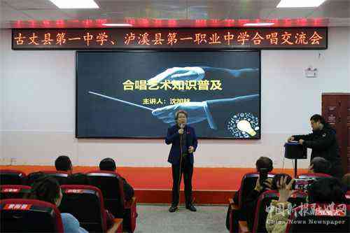 12月15日,湘西古丈一中携手泸溪职中合唱交流会在德泽楼六楼多媒体报告厅举行。湘西州音乐家协会理事,湘西州音乐家协会合唱专业委员会会长沈加林,来自古丈、泸溪及其他县市的音乐老师及两校合唱团的同学们,共计300余人参加交流会。