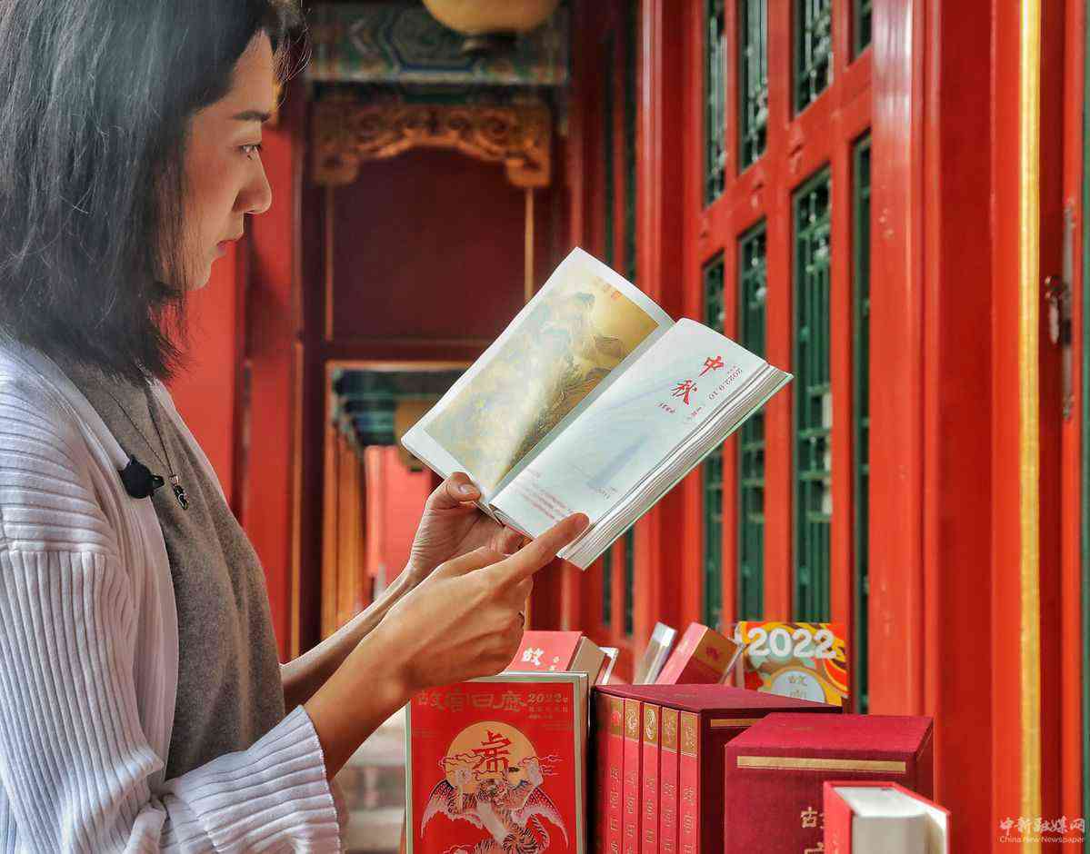 9月6日,一位女士翻阅故宫日历。 (中国日报记者 姜东 摄)