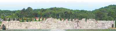 渡江胜利纪念馆广场上的群雕“千帆竞渡”。 |