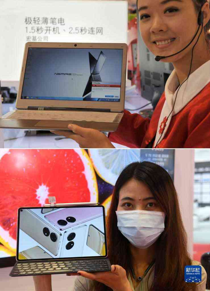 拼版照片:上图为2011年10月25日,在第8届中国—东盟博览会上,参展商在展示一款笔记本电脑;下图为2021年9月13日,在第18届中国—东盟博览会上,参展商在展示一款平板电脑。 新华社记者 周华 摄