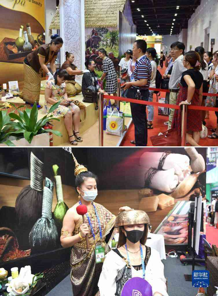 拼版照片:上图为2016年9月13日,在第13届中国—东盟博览会上,参观者在东盟国家展区泰国馆体验泰式按摩;下图为2021年9月12日,在第18届中国—东盟博览会上,参观者在泰国馆体验泰式按摩。 新华社记者 周华 摄