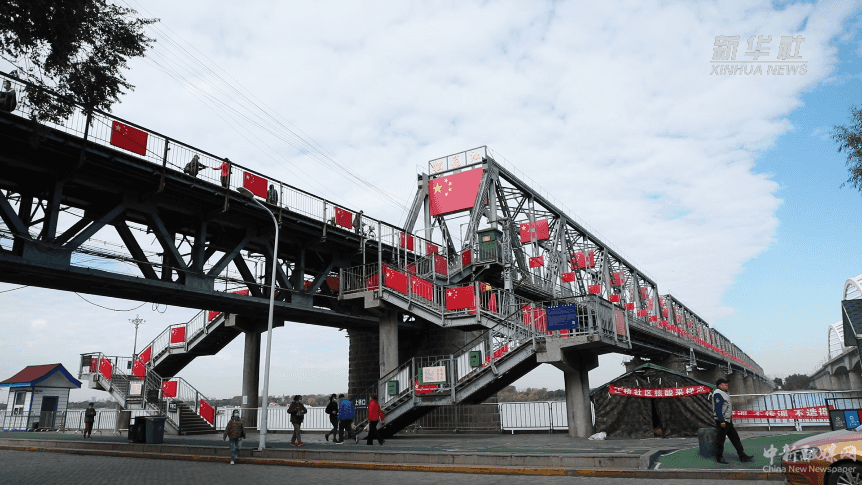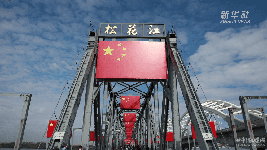 国庆节来临,哈尔滨市滨洲铁路桥上“安装”了500余面国旗,与党史学习教育长廊交相辉映。
