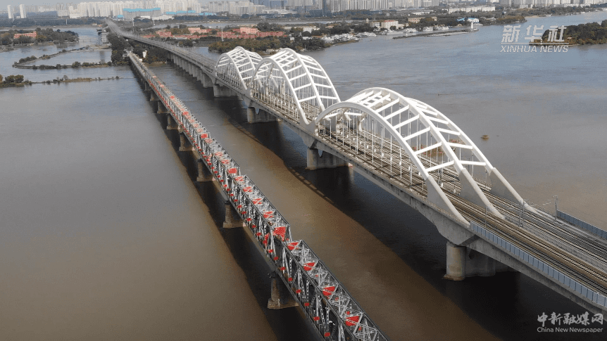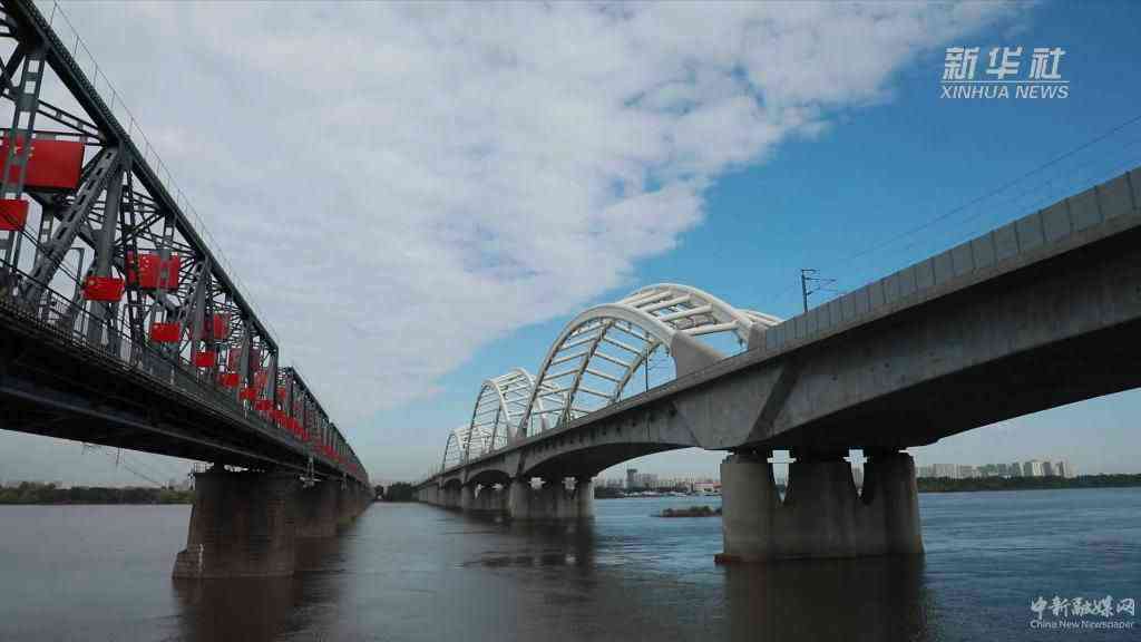 滨洲铁路桥一侧的哈齐客运专线松花江特大桥2014年投用,双桥并立于松花江上,成为一道亮丽的风景线。