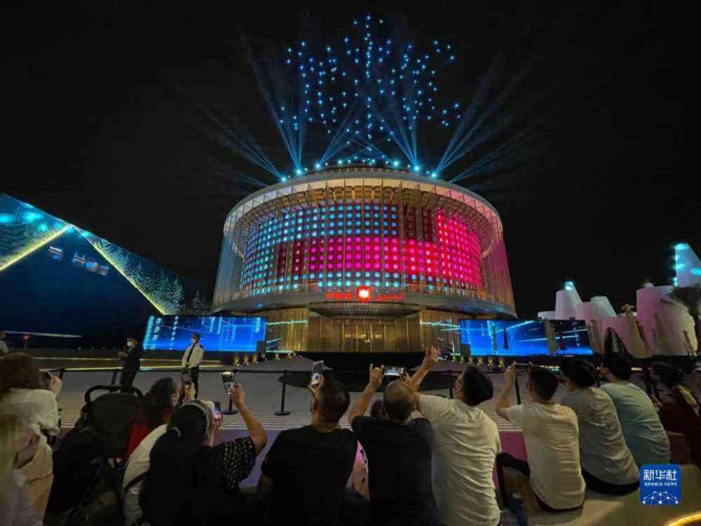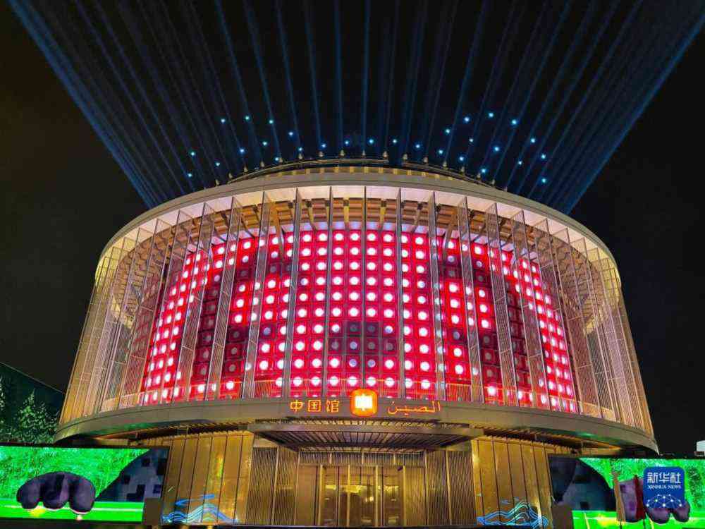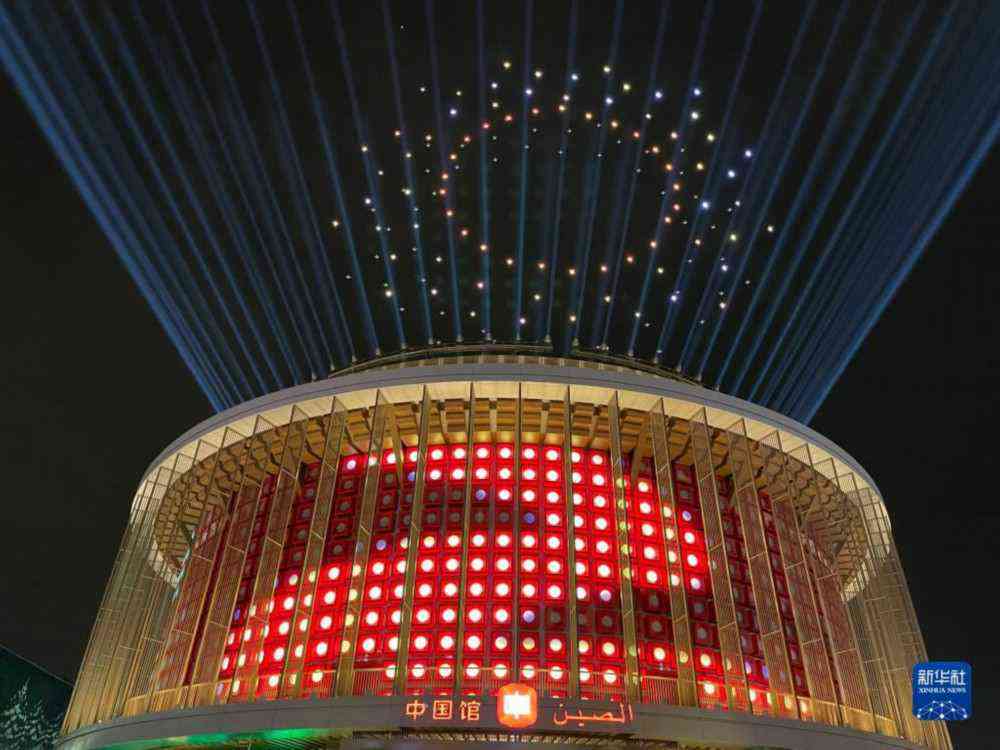 这是10月4日在阿拉伯联合酋长国迪拜拍摄的迪拜世博会中国馆大型主题灯光秀。