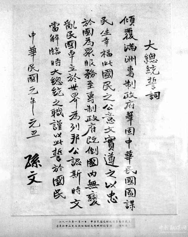 △孙中山先生就任临时大总统时的誓词(资料照片)