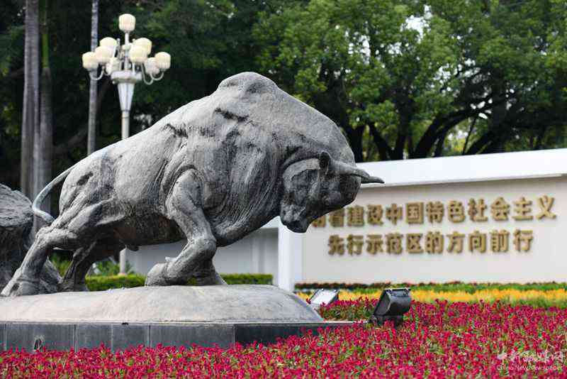 △位于深圳深南大道的“拓荒牛”雕像(2020年10月12日摄)。