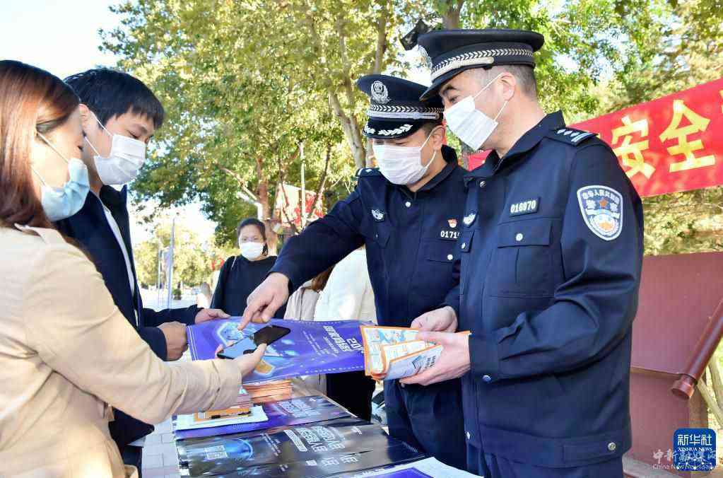 10月11日,在石家庄市元氏县常山广场举行的2021年国家网络安全宣传周活动中,当地民警为群众发放宣传资料并进行详细的网络安全知识讲解。10月11日至17日是2021年国家网络安全宣传周,各地开展了丰富多样的网络安全宣传教育活动。新华社发(张晓峰 摄)