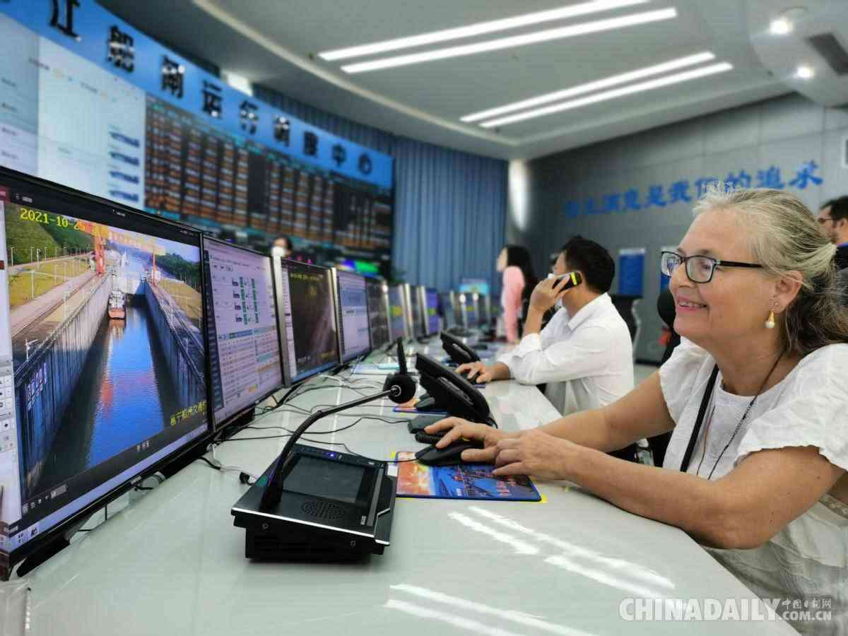 梧州地处广西、广东交界,为全力打造珠江——西江经济带区域性中心城市和广西“东融”枢纽门户城市,近年来梧州加快西江黄金水道建设,全面对接粤港澳大湾区。境外媒体采访团实地参观位于长洲船闸的西江“最强大脑”——西江船闸运行调度中心塔台,瞭望船闸运行、体验船舶调度、了解西江内河航运在国内的发展地位与建设历程。