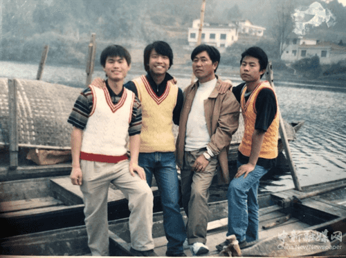 [林昌发(右二)陪邹健、邹志龙、龙武在夫夷江边散心]