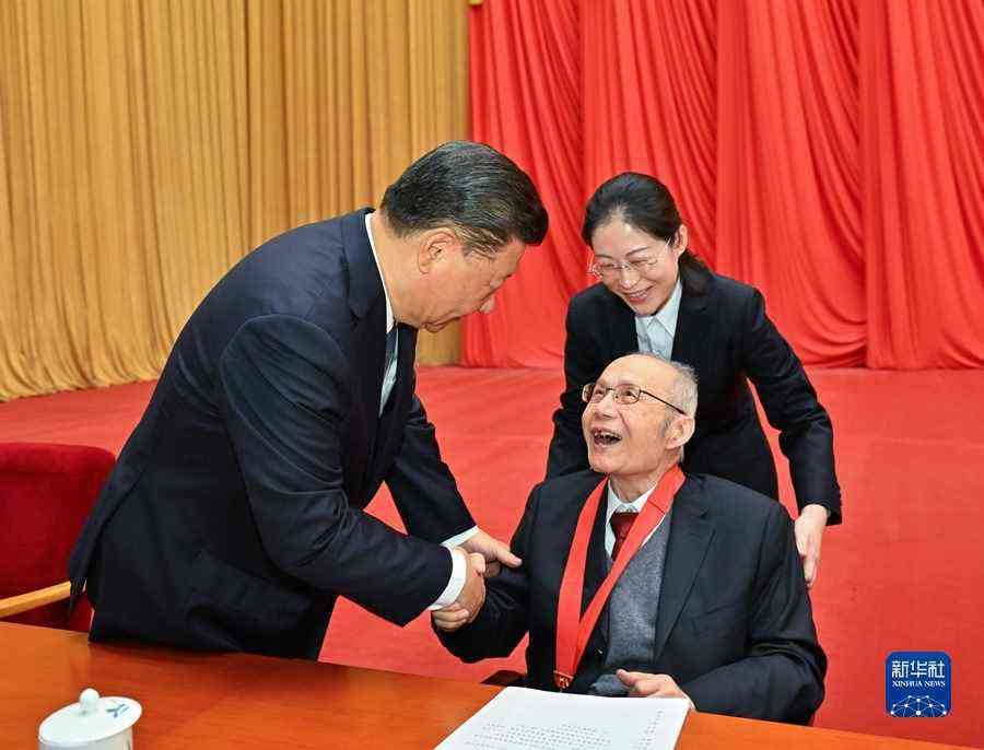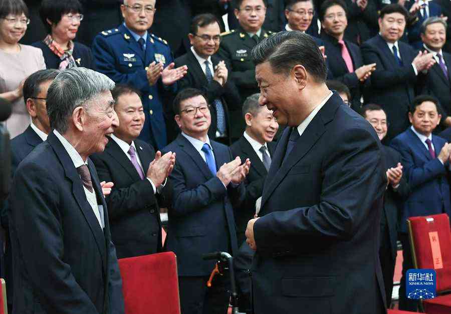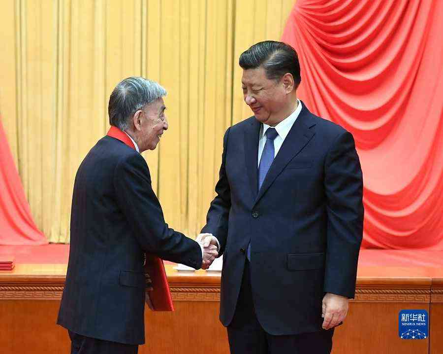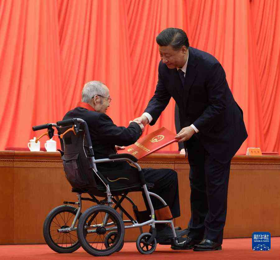 11月3日,2020年度国家科学技术奖励大会在北京人民大会堂隆重举行。中共中央总书记、国家主席、中央军委主席习近平向获得2020年度国家最高科学技术奖的中国航空工业集团有限公司顾诵芬院士颁奖。新华社记者 庞兴雷 摄