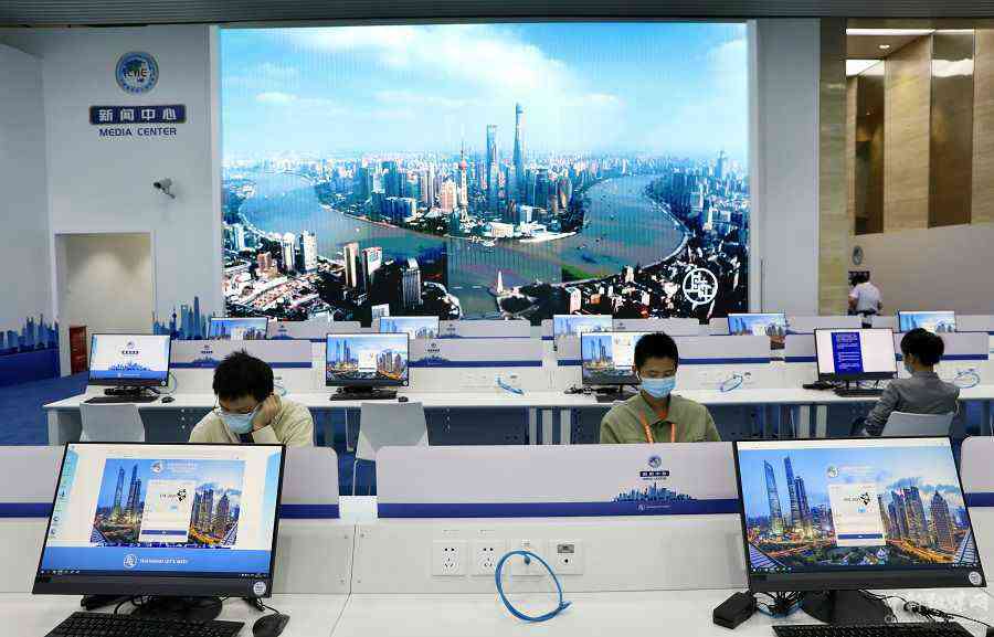中国日报上海11月4日电(记者 朱兴鑫)2021年11月4日,上海,第四届中国国际进口博览会新闻中心正式开放运营。本届进博会吸引了来自30个国家和地区的641家媒体机构的3000余名记者报名参会。
