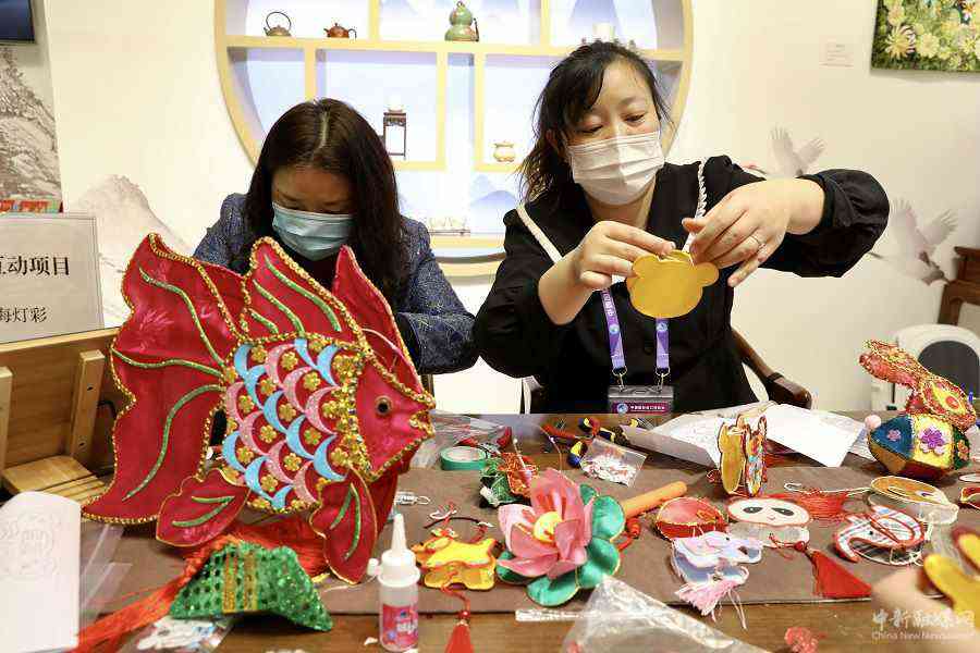 11月4日,非遗传承人龚智瑜在第四届中国国际进口博览会新闻中心为参会记者介绍上海灯彩制作技艺。(中国日报记者 朱兴鑫 摄)
