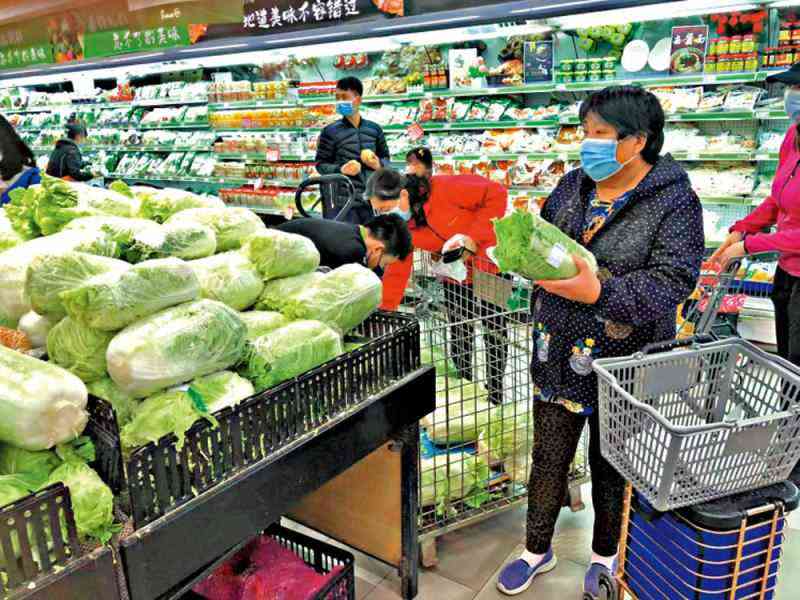 图:北京某超市里市民在囤购特价白菜。\记者任芳颉摄