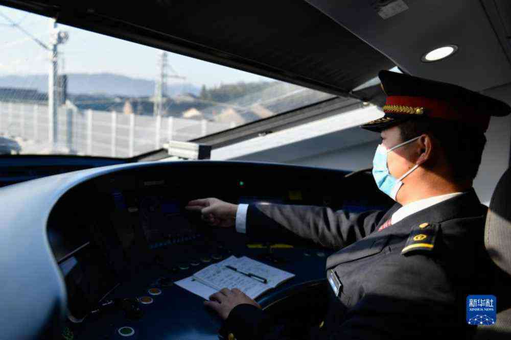11月26日,杭台高铁首趟运行试验列车的司机在驾驶室操作。