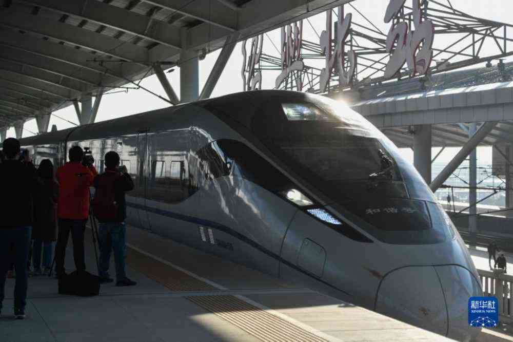 11月26日,杭台高铁首趟运行试验列车抵达绍兴北站,短暂停靠后驶向台州方向。