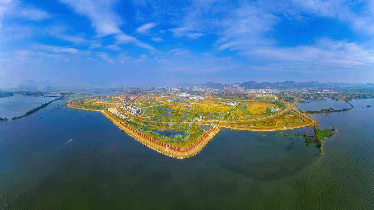 《碧水蓝天金土地》2019年10月9日拍摄于大冶湖畔。明青松摄