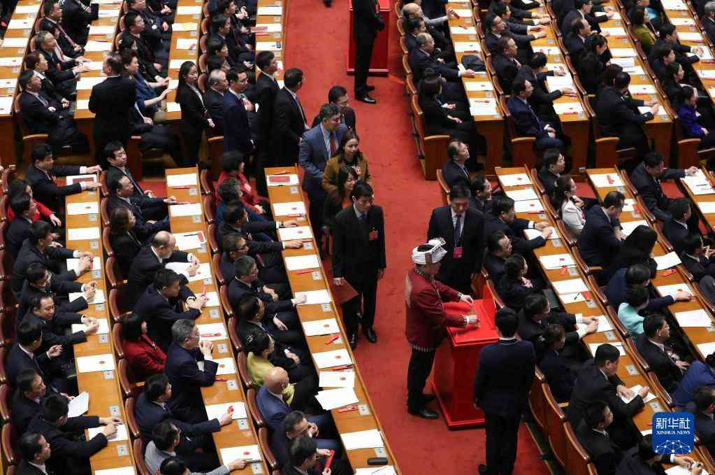 2018年3月11日,十三届全国人大一次会议在北京人民大会堂举行第三次全体会议。这是代表投票表决中华人民共和国宪法修正案草案。新华社记者 丁海涛 摄