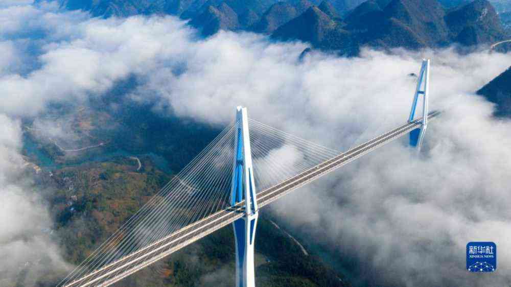 11月28日拍摄的贵州北盘江大桥(无人机照片)。
