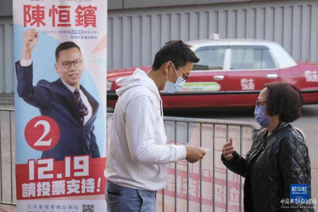 在位于香港黄埔的投票站,选民在排队准备投票(12月19日摄)。新华社记者 王申 摄