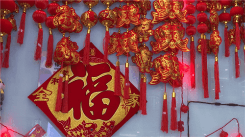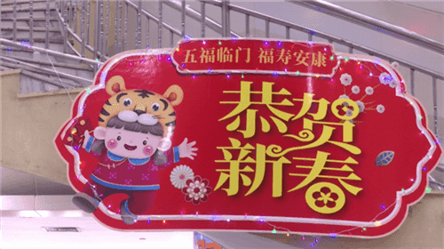 记者在另一家商场看到,这里的墙上还挂着不少老虎造型的挂件和福字春联,虎年即将到,虎年造型的春联物件真不少,祝您在虎年里虎虎生威,祝您在事业上,如虎添翼步步高。(记者 郑平)