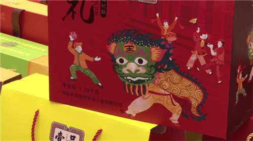造型的恭贺新春宣传画映入了记者的眼帘。就连食品的外包装盒也印有造型各异的虎头。