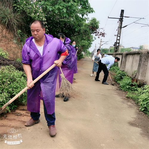 志愿者们当天带着工具、穿着雨衣,冒雨在城西村各个乡村道路上清扫垃圾,有的则拿着宣传资料走村入户热心向村民宣讲平安建设及政策法规知识,大家不嫌脏、不怕累,干得热火朝天,经过一个下午的奋战,原来杂草丛生的道路一下便变得干净整洁,踏着清扫过的道路,大家的心情格外舒畅。(颜琴)