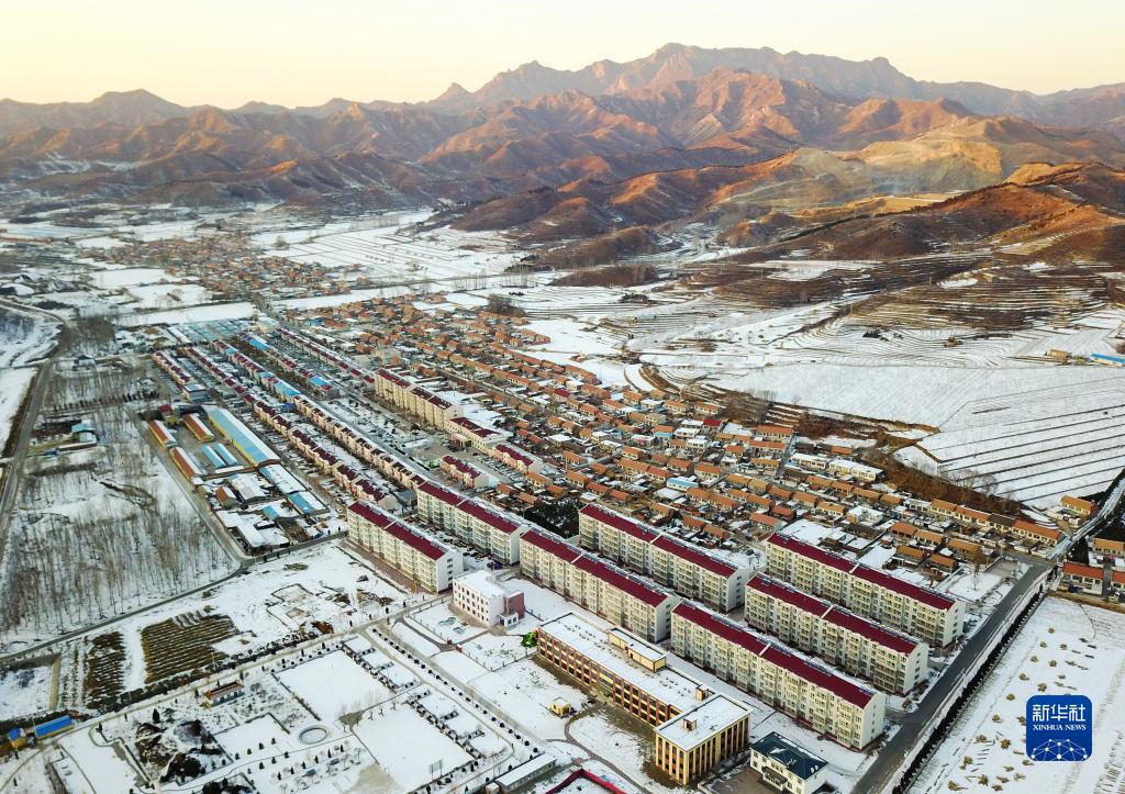 这是平泉市桲椤树镇桲椤树社区雪后的景色(2019年12月30日摄,无人机照片)。