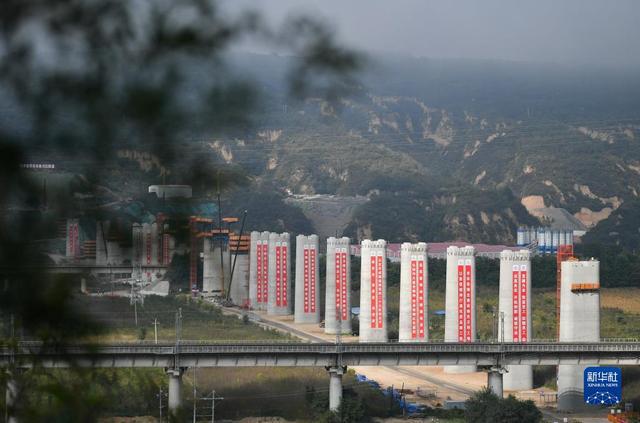 这是9月28日拍摄的位于陕西省延安市洛川县的西延高铁北洛河特大桥施工现场。 新华社记者张博文摄
