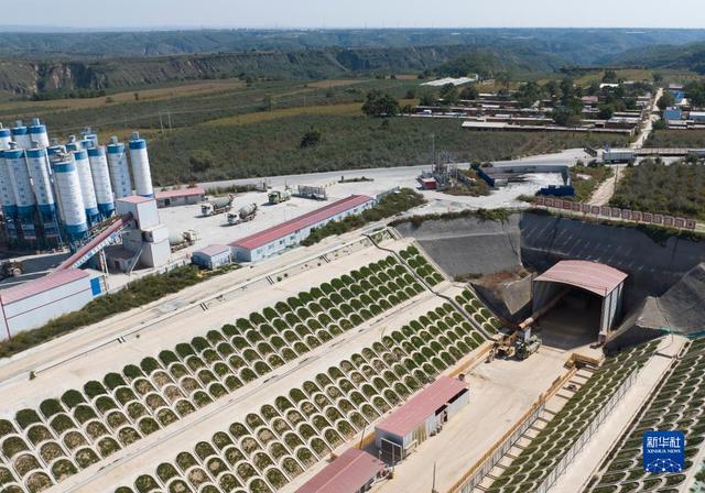 这是9月28日拍摄的位于陕西省延安市洛川县的西延高铁洛川隧道施工现场(无人机照片)。 新华社记者张博文摄