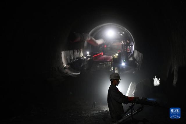 9月28日,中铁二十局施工人员在位于延安市洛川县的西延高铁伏益隧道作业。 新华社记者张博文摄