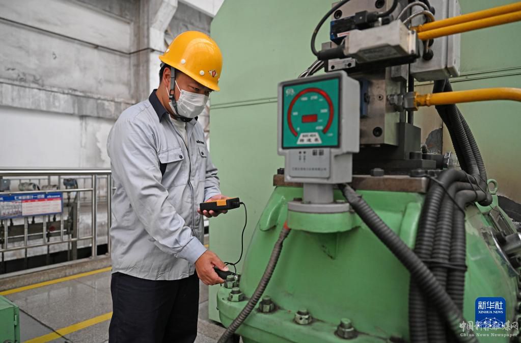 11月1日,天津泰达热电能源管理有限公司滨海热电厂工作人员在汽轮机车间检查设备。