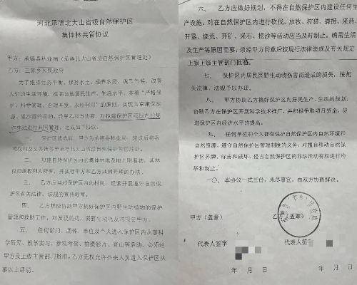 承德县林业局与三家乡政府签订的共管协议。受访者供图