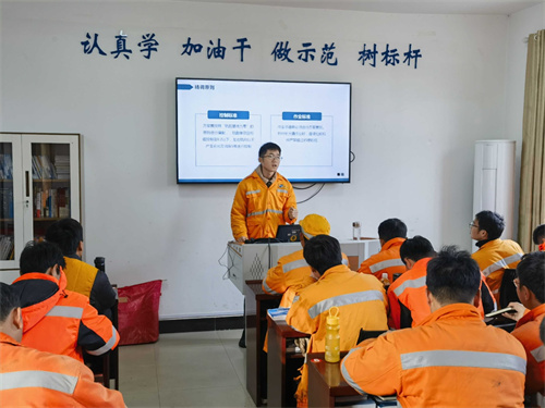 11月25日上午,中国铁路上海局集团有限公司阜阳工务段线路科数据分析室副工长刘子易来到亳州线路车间王寨示范队,为第三期学员授课普速线路轨距精调作业知识。30名学员齐聚学习室,聚精会神地听讲,认真做好笔记。