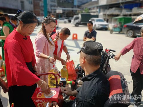 洞口县村播网红协会工作人员为残疾人发放礼品