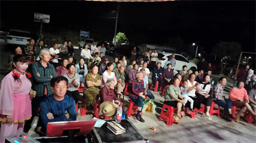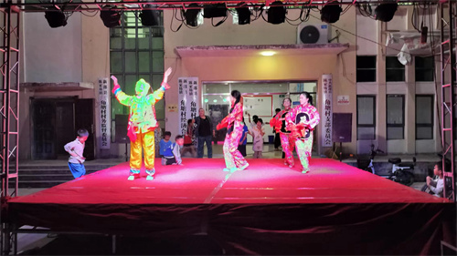随着夜幕降临,华灯初上,“村里文艺汇演”八点时分准时举行,伴随着欢快的乐曲,舞蹈“好日子”火热开场,其跳动的音律,清脆的乐音,把活动现场推到了高潮。村支部唐伯钧书记致词:“欢迎艺术人才的到场献艺,欢迎社会各界人士的参与,感谢宾果置业的慷慨解囊,心系本村上的老年人,是有担当的企业”。
