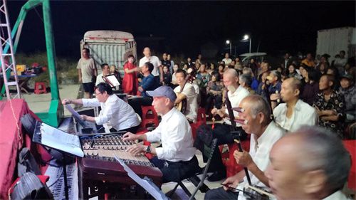 然后,由本村的文艺艺术团友情演出,有女声独唱的流行歌《青藏高原》,有《刘海砍樵》的湖南花鼓,还有激情澎湃的摇滚《黄土高坡》,独舞小品等花样呈纷,也是让老人们难以多得的“一饱眼福、精神大餐。