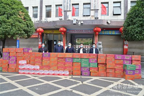 G59新新段湖南高速组团方捐赠方便面20件,矿泉水25件,消毒液10箱,口罩4000个。该镇爱心企业和单位争相捐赠抗疫物资,极大地鼓舞了全民同心战胜疫魔的斗志。(贺上升)
