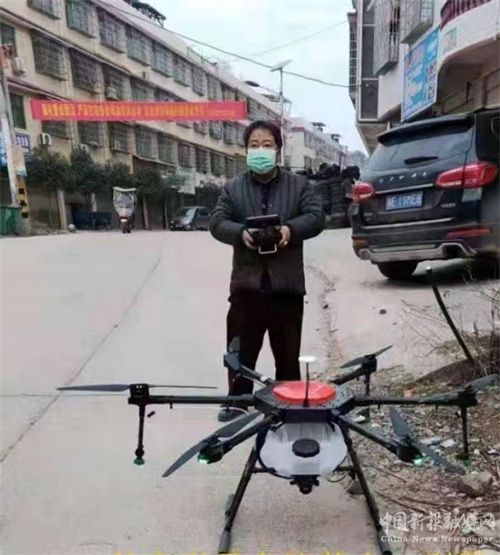 简景杰在疫情期间,就用自家用来喷洒农药防治病虫害的无人机,每天在简家陇镇中心区域进行喷洒消毒。在无人植保机不方便操作的地方,则一个个角落用电动喷雾器进行人工喷洒消毒。所有消毒药水全部由他自掏腰包购买。