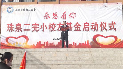 12月15日下午,“嘉禾县珠泉二完小校友基金”启动仪式在学校操场上举行,仪式由学校副校长雷春香主持。