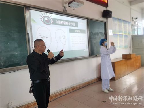 中医药文化科普:“关注眼健康”。结合全国第27个爱眼日主题,播放了《灸童与中医眼科专家主题科普动漫》,介绍了中医整体观、五行与五官、眼部穴位、明目中药、青少年视力保护常识等科普知识。省基层名中医张军辉介绍了中医眼保健的相关方法、现场传授中医药日常护理小妙招。眼科护士长还为大家演示了中医特色护理技术--耳穴压丸,现场气氛热烈,同学们纷纷参与,两人一组进行实操练习。
