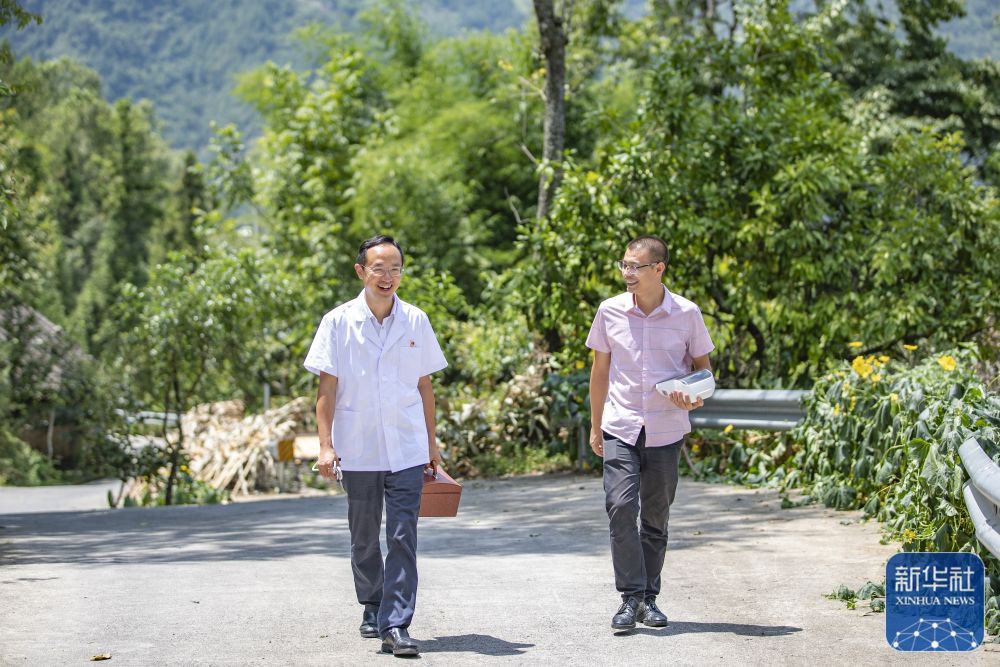 在驻村工作中,“医生书记”廖正步和同事经常带着医药箱走村入户,在察民情、听民意的同时兼任起了乡村医生。