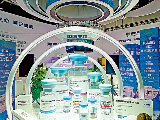 图:国药集团展示中国医药产品服务全球抗疫成果。\大公报记者张帅摄